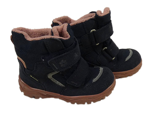• Tmavomodro-starorůžové semišovo/textilní kotníčkové zimní boty superfit vel. 23