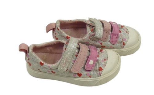 • Stříbrno-růžovo-barevné stříbrné botasky se srdíčky Clarks vel. 24