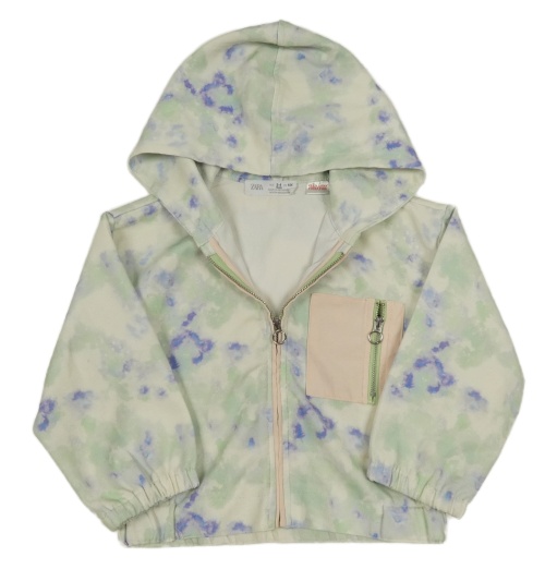 Bílo-zeleno-fialová batikovaná šusťáková podzimní bunda s kapucí Zara
