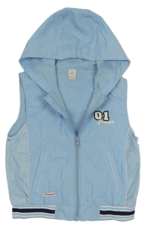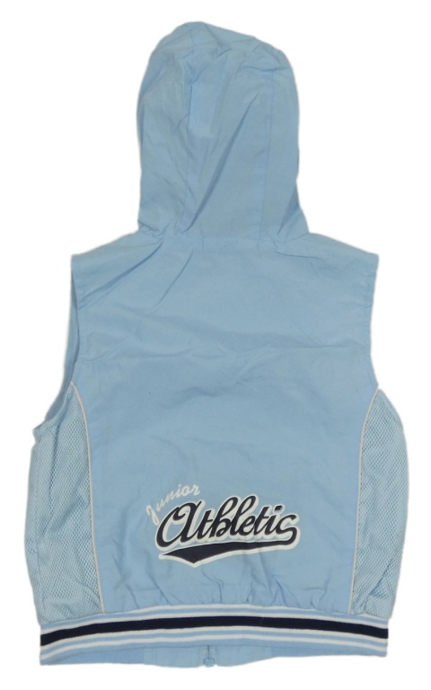 • Světlemodrá šusťáková podšitá vesta s číslem a pruhy a síťovinou a kapucí tiny ted