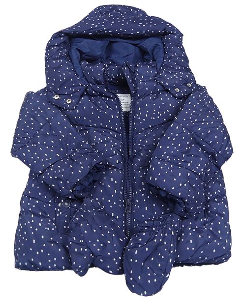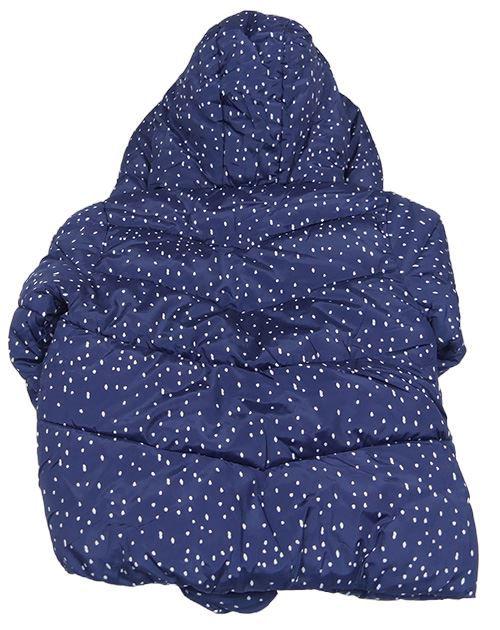 Tmavomodrá šusťáková prošívaná zimní bunda s puntíky a kapucí + rukavice Primark