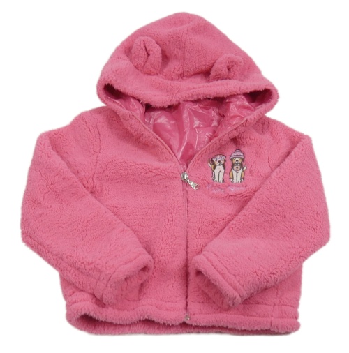 Tmavorůžová huňatá podšitá bunda se psy a kapucí