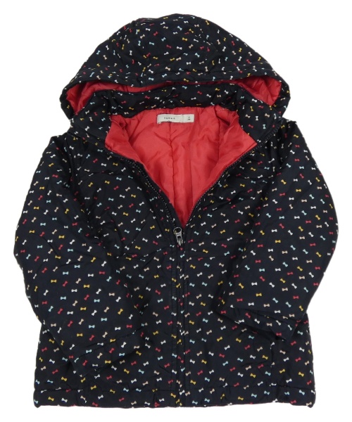 Černá šusťáková zimní bunda s mašličkami a odepínací kapucí Name it