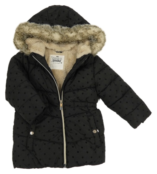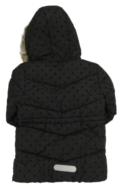 Černý šusťákový prošívaný zimní kabát s puntíky a kapucí F&F