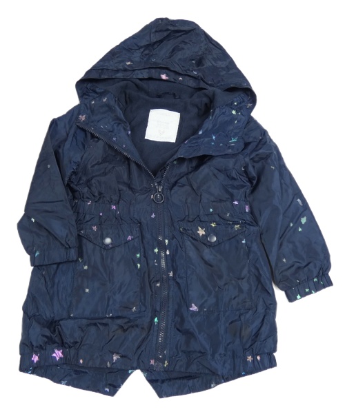 Tmavomodrá šusťáková podzimní parka s hvězdičkami a kapucí Matalan