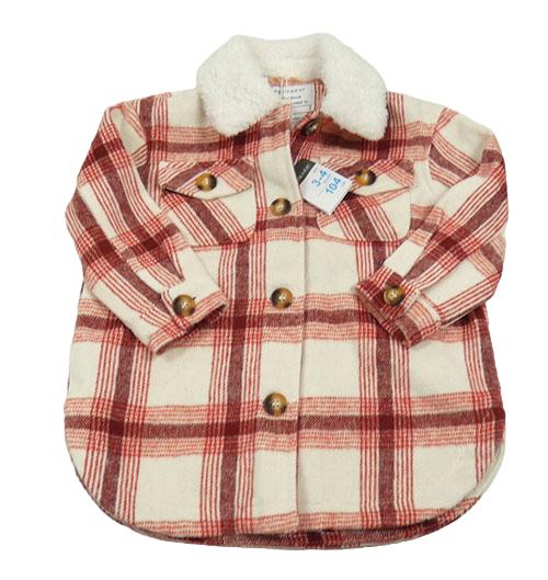 Nové - Krémovo-vínovo-červená košilová bunda s beránkem Primark