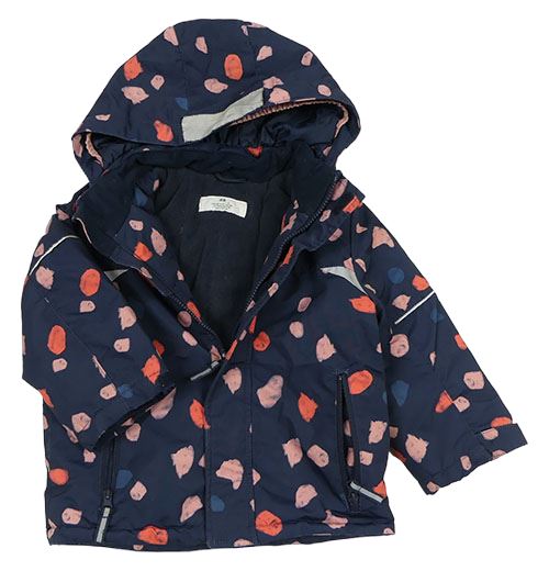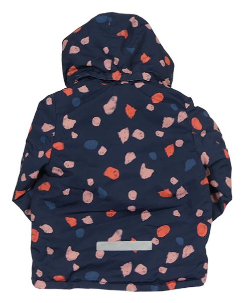 Tmavomodro-barevná šusťáková zimní bunda s puntíky a kapucí H&M