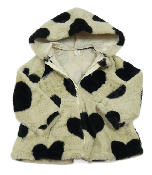 Smetanovo-černá kožešinová podšitá bunda se srdíčky a kapucí shein