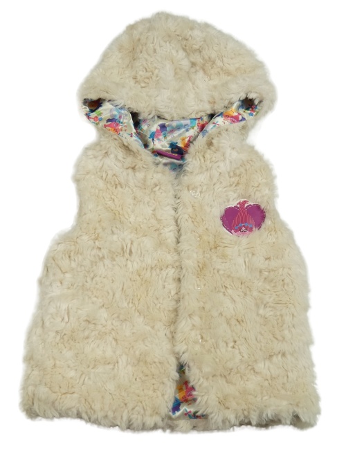 Smetanová kožešinová vesta s Poppy a kapucí