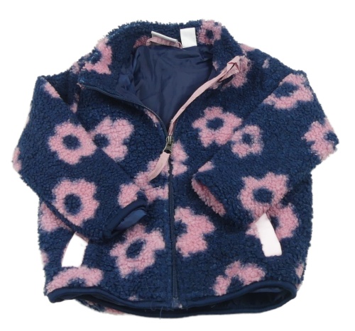 Tmavomodro-růžová květovaná huňatá pošitá bunda L&D