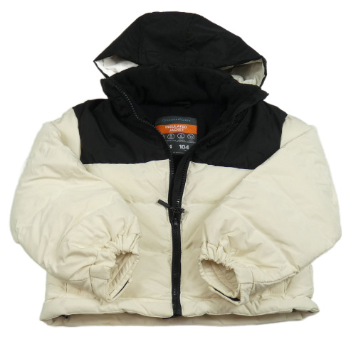 Smetanovo-černá šusťáková zimní crop bunda s kapucí Primark