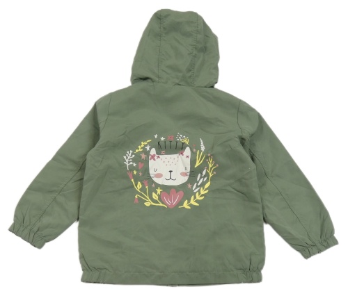 Khaki šusťáková podzimní bunda s kytičkou a kapucí Lupilu