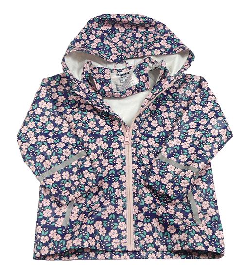 Tmavomodro-světlerůžová kytičkovaná nepromokavá bunda s kapucí lupilu