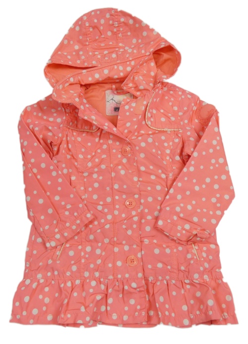 Neonově lososový puntíkatý šusťákový podzimní kabát s odepínací kapucí S. Oliver