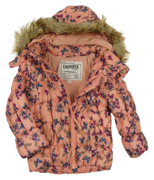 Korálová květinová šusťáková zimní bunda s kapucí Lupilu