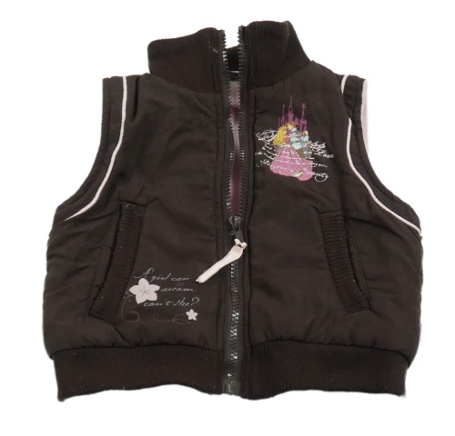 Hnědá šusťáková zateplená vesta s princeznou Disney