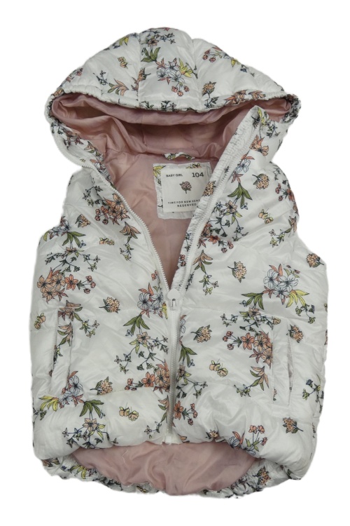 Bílá šusťáková zateplená vesta s kytičkami a kapucí Reserved