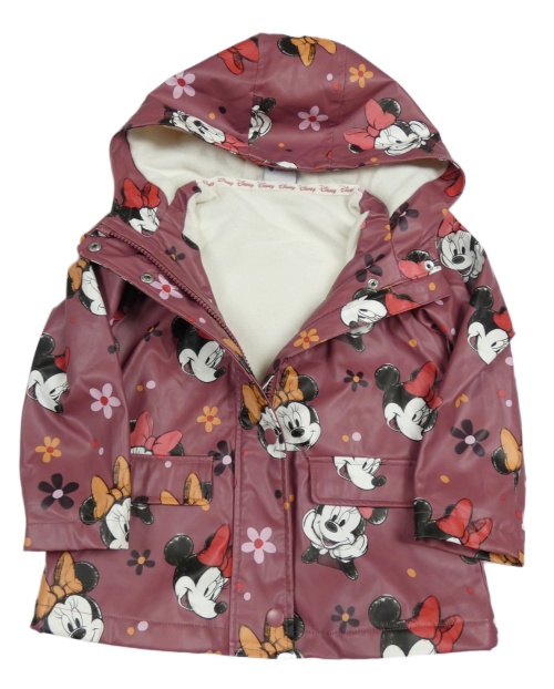 Růžová nepromokavá podzimní bunda s Minnií a kapucí Tu