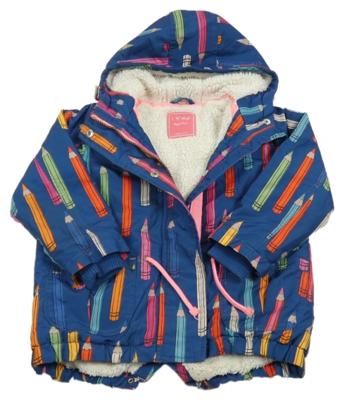 Tmavomodrá šusťáková zateplená parka s pastelkami a kapucí Next
