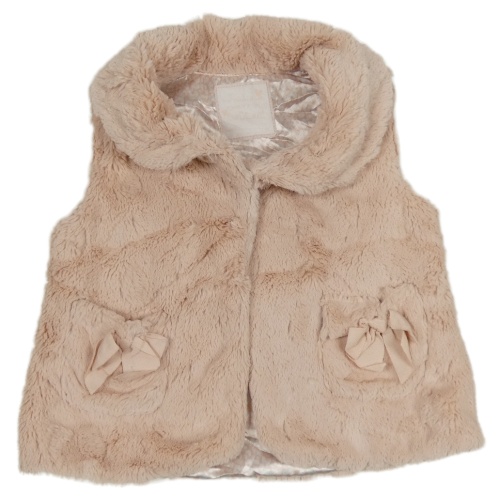 Růžová kožešinová podšitá vesta s kapsami s mašlemi Matalan