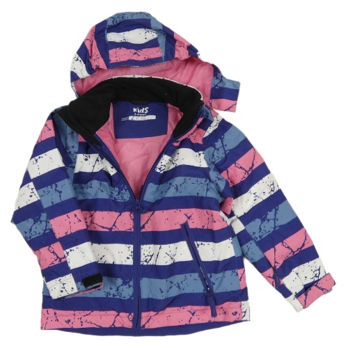 Tmavomodro-růžovo-bílá pruhovaná šusťáková lyžařská funkční bunda s kapucí Crane