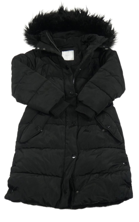 Černý prošívaný šusťákový zimní kabát s kapucí s kožešinou Next