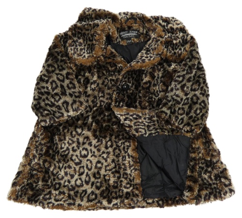 Béžovo-hnědý kožešinový podšitý kabát s leopardím vzorem