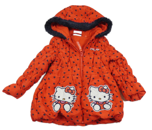 Červená srdíčkovaná šusťáková zimní bunda s Hello Kitty a kapucí Debenhams