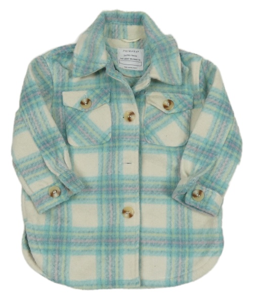 Smetanovo-zelená kostkovaná vlněná košilová bunda s límečkem Primark