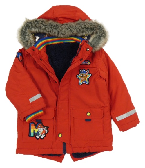 Červená šusťáková zimní bunda s kapucí s kožešinou - Tlapková patrola George