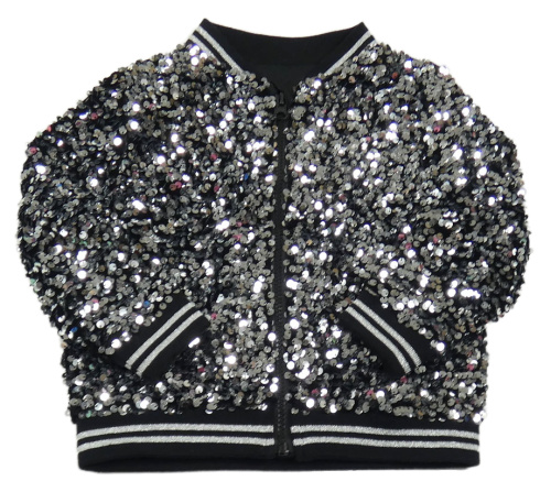 Černo-stříbrná flitrová podšitá bunda Nutmeg