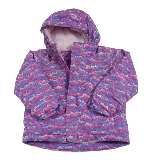 Fialovo-růžová vzorovaná šusťáková funkční zimní bunda s kapucí Columbia