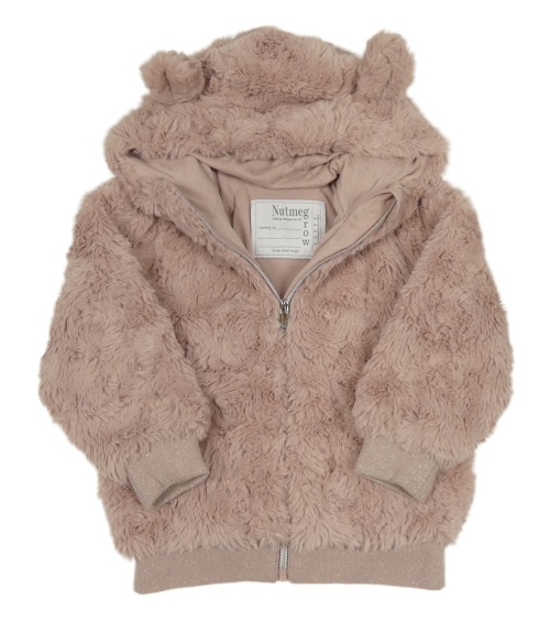 Starorůžový kožešinový podšitý bomber s kapucí s oušky Nutmeg