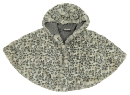 Smetanovo-šedo-béžové vzorované kožešinové podšité pončo s kapucí s oušky Next