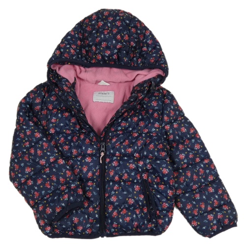 Tmavomodrá květovaná šusťáková lehká zateplená bunda s kapucí Matalan