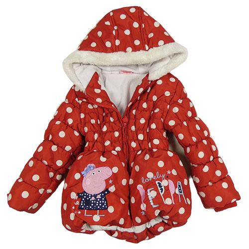 Červená puntíkatá šusťáková zimní bunda s Peppou a kapucí George
