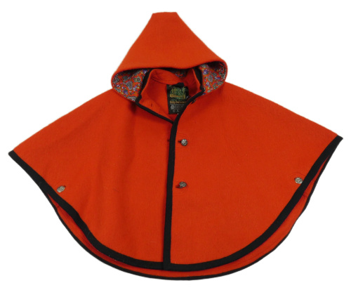Červené vlněné pončo s kapucí