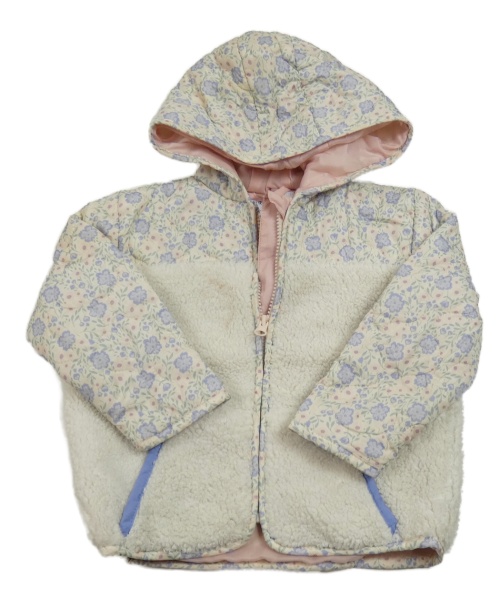 • Smetanová huňato/šusťáková podšitá/zateplená bunda s kytičkami a prošíváním a kapucí PRIMARK