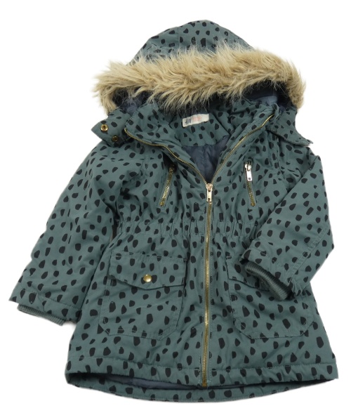 Šedomodrá vzorovaná šusťáková zateplená parka s kapucí s kožešinou H&M