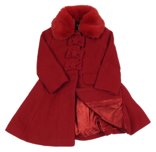 Červený flaušový jarní kabát s kožešinou Monsoon