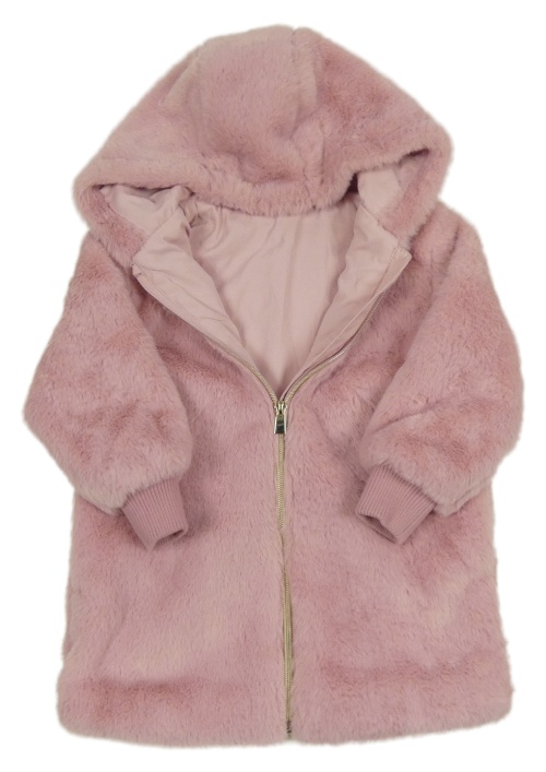 Světlerůžový kožešinový podšitý kabát s kapucí St. Bernard