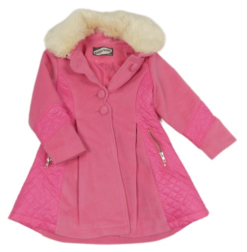 Růžový flaušovo/šusťákový podšitý kabát s kožešinovým límečkem