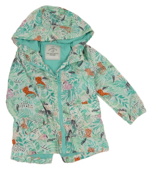 Zeleno-bílá vzorovaná šusťáková podzimní bunda se zvířaty a kapucí George