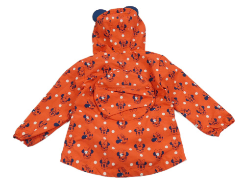 Červená šusťáková jarní bunda s Minnie a kapucí Disney