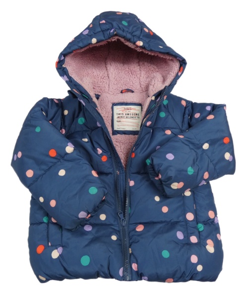Tmavomodrá zimní bunda s barevnými puntíky a kapucí M&S