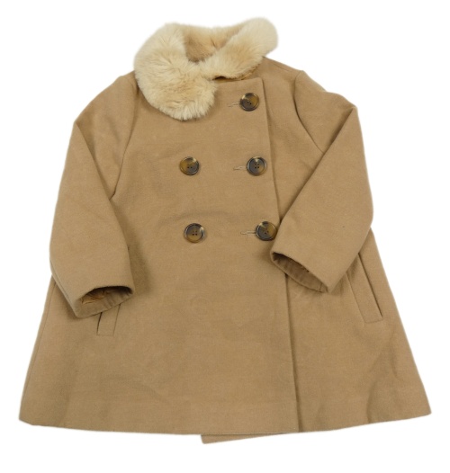 Béžový flaušový podšitý kabát s kožešinovu F&F