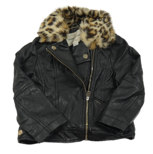 Černá koženková bunda s kožešinovým odepínacím límcem River Island