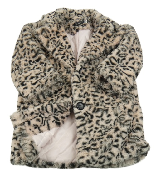 Světlepudrovo-černý vzorovaný kožešinový zateplený kabát