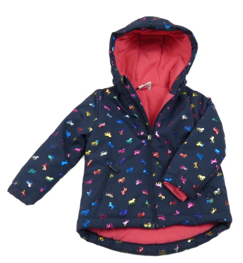 Tmavomodrá šusťáková zimní bunda s koníky a kapucí Topolino