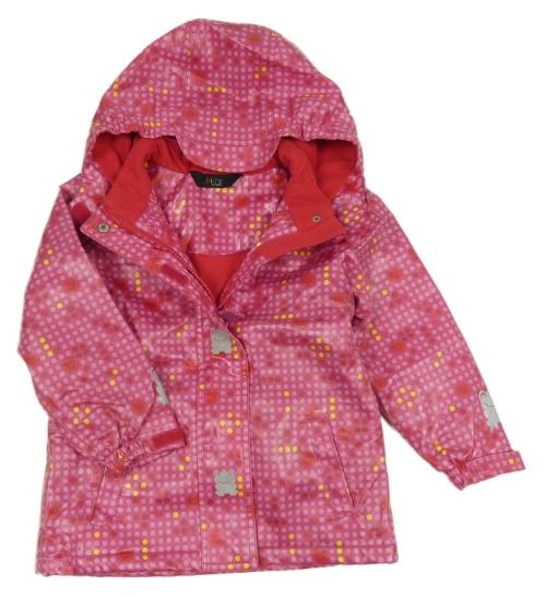 Fuchsiová puntíkatá nepromokavá lehce zateplená bunda se srdíčky a kapucí TCM